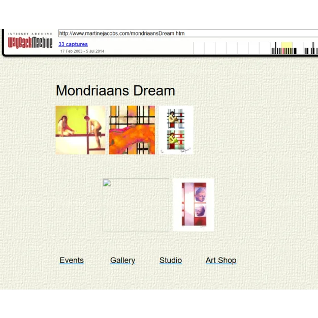 Artist: Martine Jacobs Medium: Digital collage and manipulation using Adobe and Paint Shop Pro on a first-generation Intel Pentium II computer Theme: Feminine duality, erotic geometry, Mondrian as metaphor