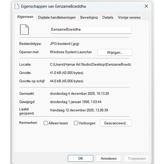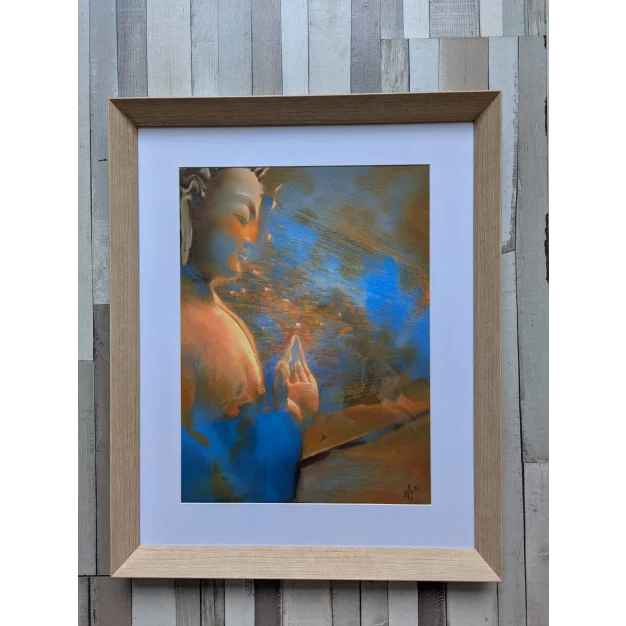 Dit stuk behoort tot de Spirituele Signaalwerken en Emotionele Surrealwerken van Martine Jacobs, waar spirituele iconen worden weergegeven als eenzame zenders van kalmte, weerstand en reflectie. Eenzame Boeddha is niet alleen een meditatiebeeld — het is een digitaal relikwie van emotionele uithoudingsvermogen, gemaakt in een pre-platformtijdperk waarin spirituele kunst pixel voor pixel werd gecodeerd. Het werk spreekt over de spanning tussen sereniteit en isolatie, aanwezigheid en afwezigheid, toewijding en verlangen.